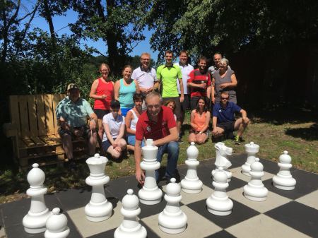 Schon seit einigen Jahren gibt es auf der Tennisanlage in Schierloh einen Bouleplatz. Auf die Initiative von Dieter Kersten kann sich der TC-Glandorf nun auch über ein Schachfeld freuen. Dieter Kersten hatte nicht nur die Idee zu diesem Projekt, sondern setzte es auch in die Tat um. Somit konnte das Schachfeld am 30. Juni eingeweiht werden und steht allen Mitgliedern des TC noch bis zum Ende der Saison und in den kommende Jahren zur Verfügung.
